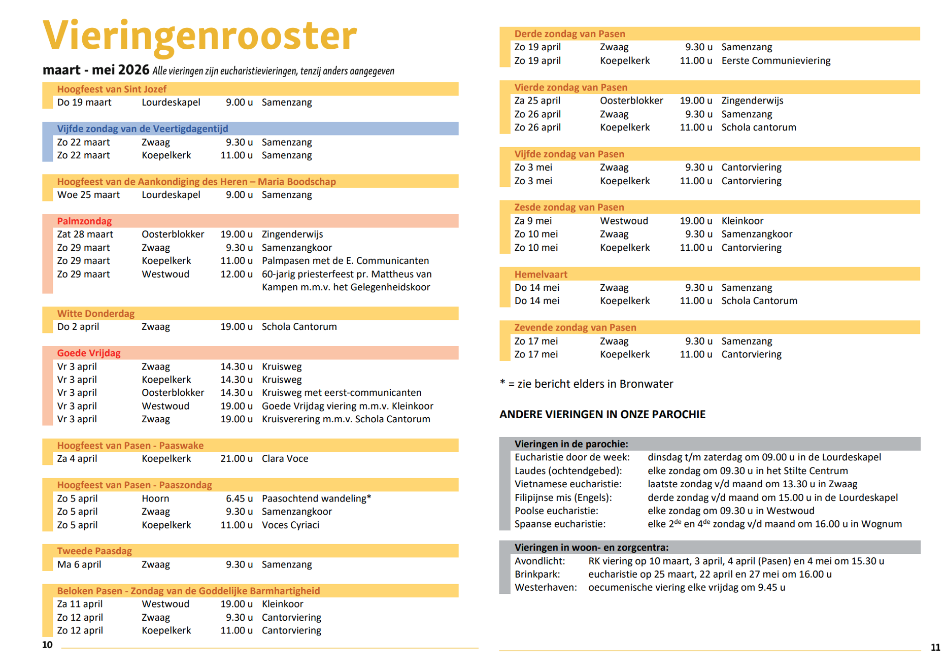 De vieringen in onze parochie volgen een vast rooster